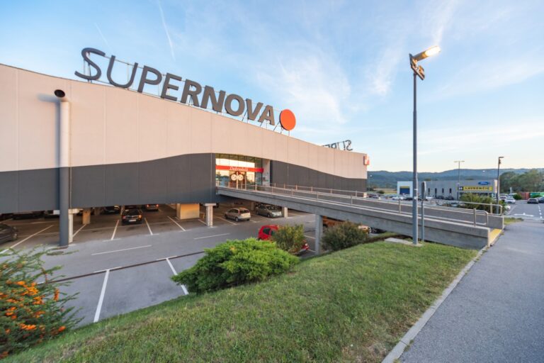 Supernova Mercator Ajdovščina is a shopping center located in the Vipava Valley, just a few minutes’ drive from the city center of Ajdovščina and next to the highway. It is ideal for quick shopping, offering a variety of stores, including fashion, home decor, electronics, and more. The center is family friendly and includes 344 free parking spaces, with a 24-hour petrol station across the street for added convenience. The center features 15 stores and a hypermarket, ensuring a comprehensive shopping experience. Additionally, Supernova Mercator Ajdovščina holds a BREEAM certification, highlighting its commitment to sustainability and environmental performance.