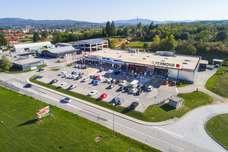 Retail Park Metlika is a shopping center located in a prime spot, right next to the busy XV. Brigade main road, making it ideal for quick and enjoyable shopping trips. Opened in 2001 and refurbished in 2017, the center features a total of 3.000 m² of retail space, with 5 tenants offering everything visitors need in one convenient location. The largest tenant is Spar. The shopping center is well situated with 86 parking spaces available, including 42 open-air parking spaces directly in front of the building, all free of charge. Known as a favorite local shopping destination in the heart of the White Carniola region, Supernova RC Metlika provides a great mix of stores for quick weekly shopping trips.